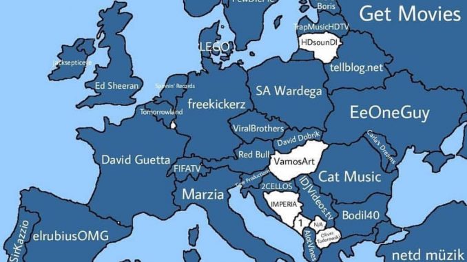 Objavljena karta najpopularnijih YouTube kanala u Evropi: U BiH najslušaniji Jala Brat i Buba Corelli